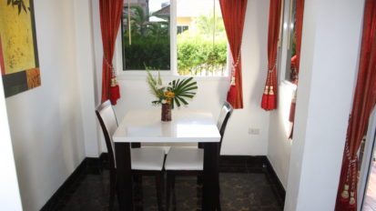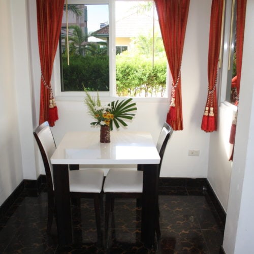 ห้องนอนเตียง 5 ฟุต มีโต๊ะนั่งเล่นในห้อง