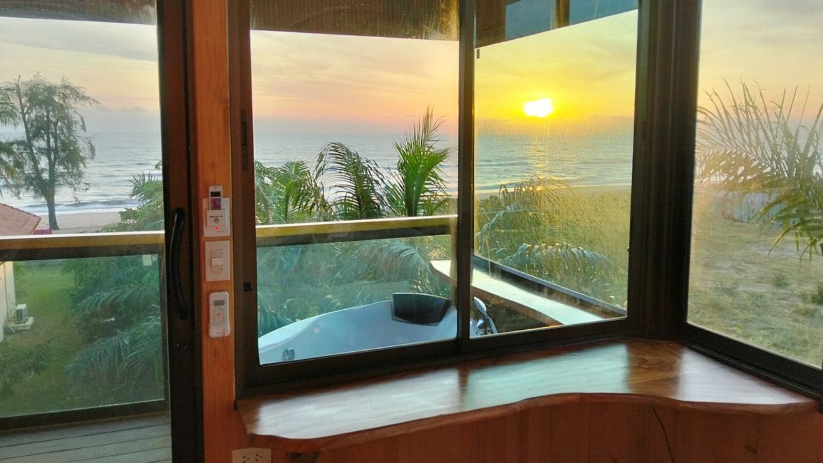 พร้อมวิวทะเลอันสวยงาม สูง 6 เมตร พื้นที่นั่งเล่นและอ่างจากุซซี่บนระเบียง